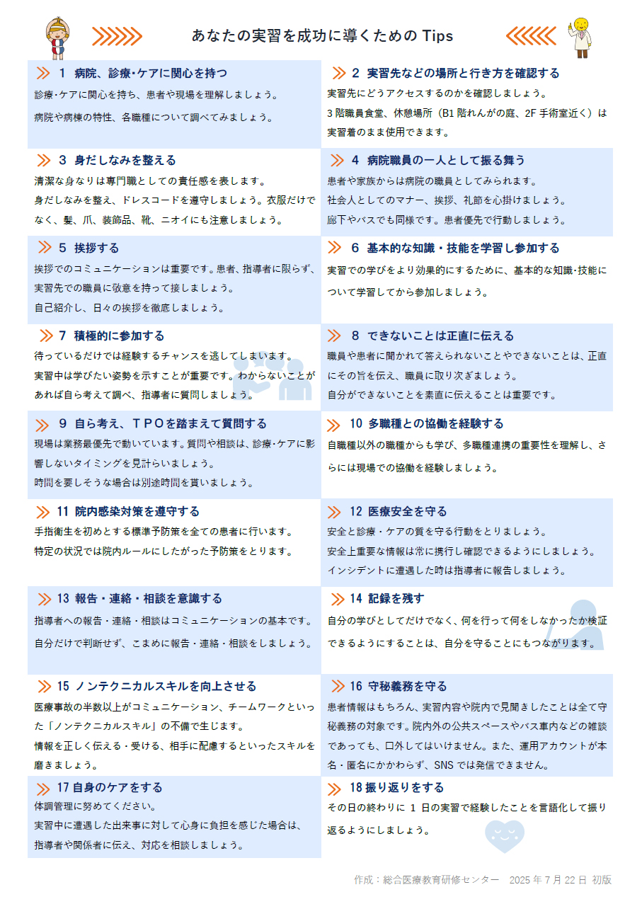 実習/研修当日の理解を深め、より実践的な学びにつなげるための内容です。