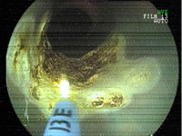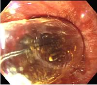食道癌、胃癌などで術後に吻合部狭窄をおこし、食事の摂取量が極端に減ってしまった方を対象にしています。バルーンダイレーターという先端に風船がついた処置具を使って拡張します。通常は外来で治療可能です。