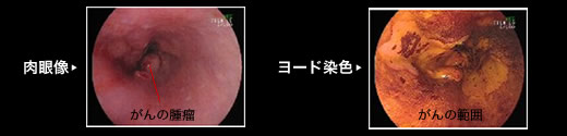 ヨード染色により、癌の食道内のひろがりが明らかになります。