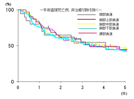 図1. 当教室における食道癌切除例の占居部位別治療成績