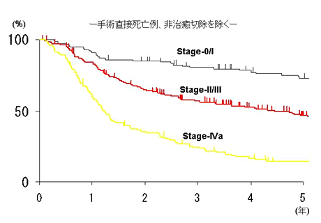 図2. 当教室における食道癌切除例のStage別治療成績