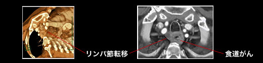 立体表示により、癌の周囲への広がりやリンパ節転移がよくわかります。