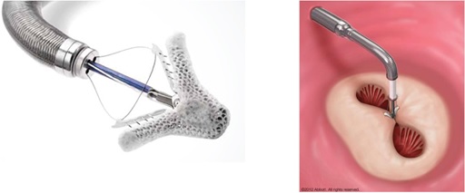 左心室と左心房の間にある僧帽弁の接合が悪くなり血液が逆流してしまう疾患(僧帽弁閉鎖不全症)に対し、外科手術が困難な場合に経皮的僧帽弁クリップ術(MitraClip: マイトラクリップ)を行っています。隙間ができてしまっている弁の尖端同士を専用のクリップを用いて接合させる治療になります。開胸せずに弁の逆流を減らすことができる最先端の治療です。