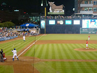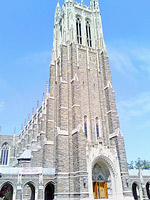 ノースカロライナ州は、日本ではあまり馴染みのない州かもしれませんが、東側のアウターバンクスにはライト兄弟が飛行実験を行ったキティーホークがあり、またノースカロライナはベーブルースが初めてホームランを打った場所であり、ペプシコーラとクリスピークリーム・ドーナツの発祥地でもあります。そのためかクリスピークリーム・ドーナツを1ダース食べて5マイル走る風変わりなレースも毎年開催されています。ダーラムという都市は、更に馴染みがないと思いますが、ここには昨年引退した松井秀喜選手がメジャーに昇格する前に所属していたダーラム・ブルズという3Aの野球チームがあります。同じくマイナーで調整していた松坂大輔投手との対戦があり、その日は多くの日本人が観戦に訪れ、大変盛り上がりました。いよいよ大学の紹介です。Dukeと言ってもゴルゴ13とは全くの無関係ですが、Duke大学は昨年受賞したDr. Robert Lefkowitzをはじめ多くのノーベル賞受賞者を輩出しています。またカレッジ・バスケットボールの強豪校として有名であり、男子バスケットボール部監督のコーチKはオリンピック・アメリカ代表チームの監督でもあります。隣町のChapel HillにあるUNCはマイケル・ジョーダンの母校であり、ここもまた強豪校であるため、両校の対戦は日本の早慶戦のように盛り上がります。