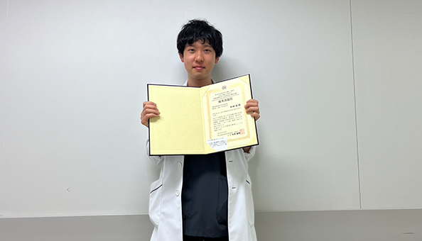 - ひとこと:行き届いた指導のおかげでこのような賞をいただくことができました。この受賞を励みに、今後もより一層努力し、医学の発展に少しでも貢献できるよう精進してまいります。