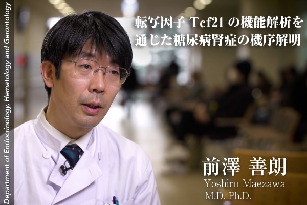 糖尿病は、心臓や血管、腎臓などの病気を伴いやすいだけでなく、ある種のがんを増やすと考えられています。しかし、これら疾患の関連性や背後に潜むメカニズムは、まだまだ分からないことだらけです。前澤先生は、Tcf21という転写因子と取り巻くシグナルの解析を通じて、生体の恒常性や糖尿病合併症の病態を明らかにしようとしています。新たな発見が楽しみです。
