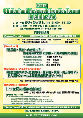 第6回 Clinical and Research Frontier Forum in Chiba 2014 | 大和田千桂子先生 他 | 「糖尿病・代謝・内分泌内科/ 血液内科における診療・研究の最新の話題」他 |