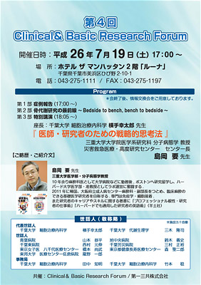 第4回 Clinical & Basic Research Forum | 島岡 要先生 他 | 「医師・研究者のための戦略的思考法」 |