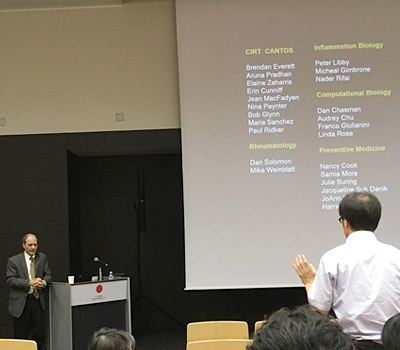 炎症と動脈硬化に関わる数多くの臨床試験を主導され、国際的に著名なPaul M Ridker教授が当科を訪問されました。本年8月にNEJM誌とLancet誌に報告されたCANTOS試験を中心とする最新の話題や研究の背景、そして将来展望をご講演いただき、90名を超える聴衆との間で活発なディスカッションが行われました。
