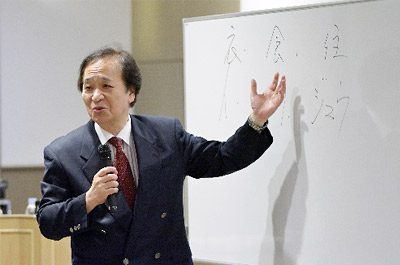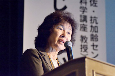 学会終了後に行われた市民公開講座では、「楽しく元気に長生きするための食生活を考える」とのテーマで、独立行政法人国立病院機構京都医療センターの浅原哲子先生のご講演と元NHKアナウンサーの古屋和雄さんから「イ・ショク」足りて健康長寿という講演テーマでお話いただきました。古屋さんの、なぞかけ問答を交えた軽妙な語り口に参加された市民の皆さんは魅了されていました。
