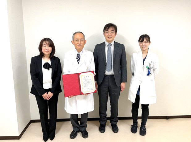 第二内科の基幹病院で地域医療を支え、数多くの若手医師の育成にご貢献頂きましたことに感謝の意を込めて、小野啓科長から感謝状が贈呈されました。(2023.4.18撮影)