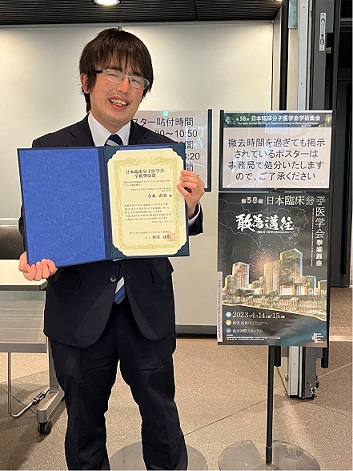 2023年4月14日から15日まで東京で開催された第58回日本臨床分子医学会学術集会において、寺本直弥先生が学術奨励賞(YIA)を受賞しました。