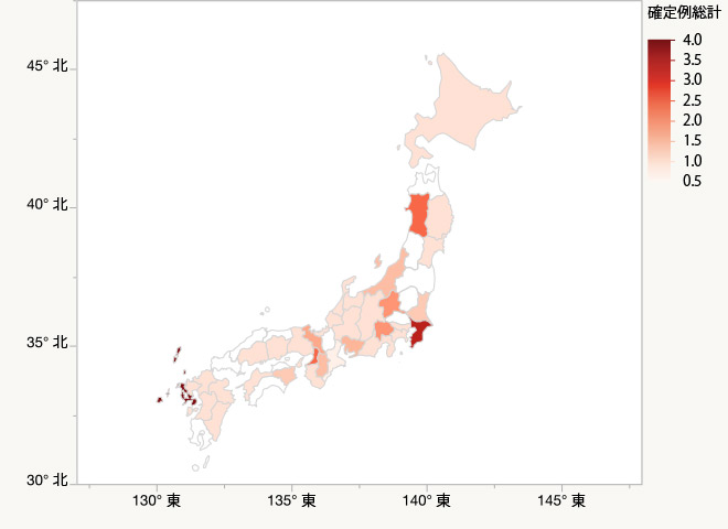 また、全国における患者さんの分布については、地域的な偏り*が見られませんでした。したがって、その発症頻度に明らかな地域差はなく、日本国内に広く患者さんが存在することが示唆されます。