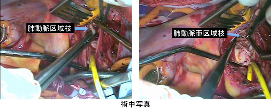 胸骨正中切開で行い、両側の肺動脈の器質化血栓を摘出する