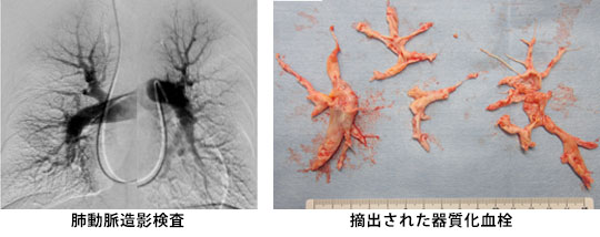 本疾患では反復する肺塞栓症が特徴のひとつであり、未治療の場合やワーファリンの効果が減弱した場合、肺動脈血栓形成により急速に呼吸循環不全(急性増悪)となることがあります。急性肺塞栓症とCTEPH急性増悪の鑑別は困難な場合があり、抗凝固療法や血栓溶解療法を行っても改善せず、増悪する場合はCTEPHの可能性があります。原則的には抗凝固療法の強化、血栓溶解療法を行いますが、効果がない場合はPEAが唯一の救命手段となります。