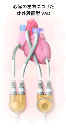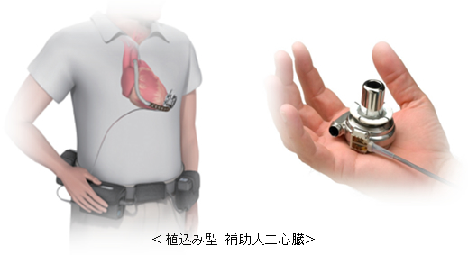 補助人工心臓(Ventricular Assist Device/System: VADまたはVAS)とは、心臓のポンプ機能を機械的に代行する装置です。その需要と期待の高さから世界的に開発が進み、今では心臓移植待機期間中の心臓補助として非常に重要な役割を果しています。補助人工心臓装着の対象となるのは、難治性の重症心不全であり、従来の治療法(薬剤やその他の補助循環装置)では回復が見込めず、心臓移植以外には救命が困難と考えられる病態です。通常は心臓移植までの状態維持を目的にこの補助人工心臓を使いますが、弱った心臓を休ませ、その回復を図る目的に使用する場合もあります。VAD装着により自己心機能が回復し、VADから離脱できた報告もあり、今後その適応拡大が予想されます。
