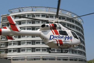 2009年1月に,千葉県では2機目になるドクターヘリが当院に配備されました.ヘリコプター到着15分圏内の南房総地域を中心に千葉県ほぼ全域から,より広い範囲からの救急受け入れが可能となりました.2014年1年間のドクターヘリ出動件数は379件を数えています.活躍する場所はさらに拡大しており,志ある救急医がわれわれと一緒に診療に参加してくれることを強く望みます.ドクターヘリ搭乗医師として,千葉県内の高次医療施設からも搭乗希望の医師を受け入れており,県内の救急医の連携体制を強固にしています.当院における初期臨床研修医も,ドクターヘリ搭乗実習を積極的に行っています.
