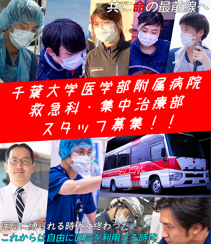 千葉大学病院救急科・集中治療部では救急集中治療に興味を持つ専攻医・スタッフを募集しています.