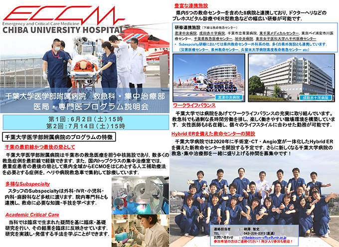 当日は,当科の紹介や新しく予定されている新専門医制度における研修プログラムに関することを中心に,ICUやヘリポートの見学なども予定しております.