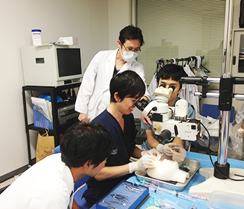 豚眼でのトレーニング後に、指導医のサポートのもと、まずは白内障の部分執刀から始め、完投を目指します。その先にはさらに緑内障、硝子体手術と専門手術のトレーニングが可能です。