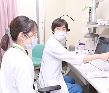 専任指導医が所見の取り方や診察のコツをトレーニング。外来デビュー後も2診体制で指導医から必ずフィードバックがつきます。当直も指導医によるバックアップ体制のもと行います。