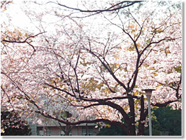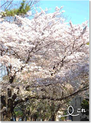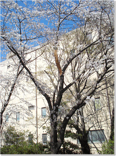 私は、毎朝その木の下を通って医学部建物(某テレビ番組で、医学部の権威の象徴として画像が使われた重厚な建物です)に入ります(写真3)。春には、満開の桜の下をくぐっての通勤です(写真4)。