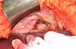 横隔膜部分切除術. 横隔膜への播種巣が、横隔膜筋層、胸膜まで浸潤.