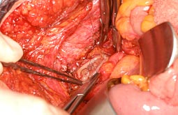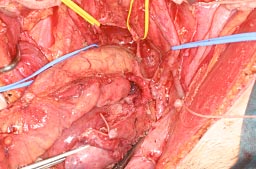 千葉大学病院において、手術チームの一員として診療に参加し、術前診断、手術手技、術後管理などについて研修を行います。中心静脈カテーテル挿入、胸腔ドレーン挿入、イレウス管挿入などの手技に慣れていなければスタッフの指導のもとに習得します。人工肛門造設や小腸・結腸部分切除などより消化管手術を開始し、基本的な消化管吻合などの手術手技を習得します。また、尿管部分切除・再吻合などの手術手技を習得します。