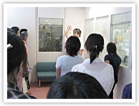 参加者は、22名(医学部学生16名、初期研修医6名)で、うち5名が男性でした。今回見学した周産期診療施設は、千葉市立海浜病院・東京女子医大八千代医療センター・成田赤十字病院・旭中央病院・君津中央病院・亀田総合病院の計6か所でした。昨年の第1回・第2回以上に、参加者も各施設の先生方も大変熱心で、ついつい滞在時間が延びて日程は大幅に遅れてしまいました。18日夜には、かずさアカデミアパーク内のホテルオークラでイブニングレクチャーが行われ、夕食・交流会には若手産科医が加わりました。その後、話は一向に尽きず二次会、さらには有志による三次会へと続いて行きました。