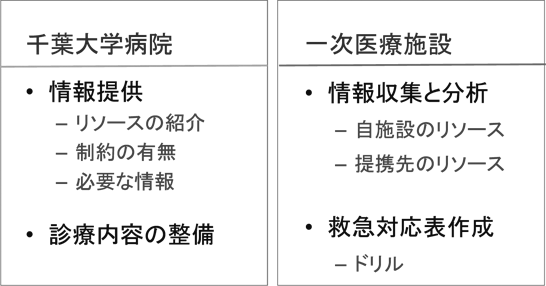 命に関わる重症例が発生した場合、すみやかに、千葉大学医学部附属病院に「3.5次」症例であることを連絡していただきます。