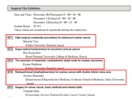 The 5th Biennial Meeting of Asian Society of Gynecologic Oncology (ASGO 2017) Surgical Film Exhibitionの10演題中3演題が千葉大学から選ばれました。