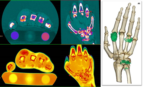 当院では、最新のDual Energy CTを導入しています。Dual Energy CTは、異なる2種類のエネルギーのX線でCT撮影を行い、従来のCTで得られることのできなかった、物質弁別画像や仮想単色X線画像、実効原子番号解析などが可能です。