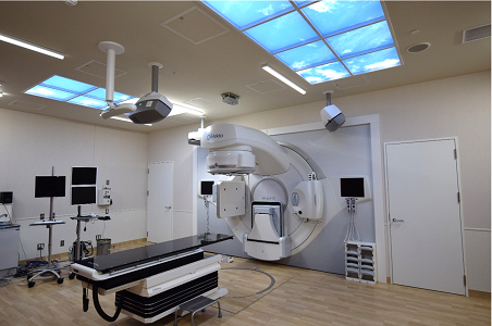 リニアックによる放射線治療は、患者さんの病気や症状によって異なりますが、通常、数回から30数回まで連続で照射を行います。当院では、患者とのコミュニケーションを何よりも大切に考え、毎回の治療が苦痛なものにならないよう心掛けています。また、照射中に少しでもリラックスしていただけるよう青空をイメージしたバーチャルな天窓を各部屋に配置しています。