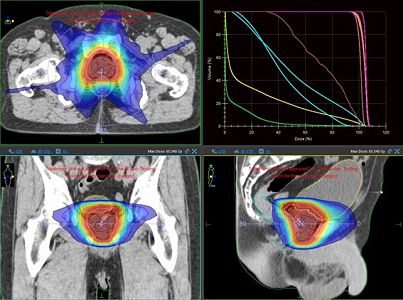 IMRTとは、コンピュータによる治療計画の最適化を行い、正常組織に投与されてしまう放射線の量を従来の外部照射よりも抑えることができ、かつ病変に集中的に放射線を投与することを可能にする照射です。当院では2011年よりIMRTを施行しており、主に前立腺がん、頭頚部がんに多く行っています。
