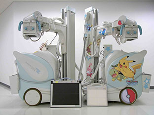 移動が困難な方には、病室での撮影を行います。FPD搭載移動式X線撮影装置を緊急時にも対応できるよう、ICU・HCU・CCUの専用機、NICU・GCUの専用機、その他一般病棟用の計3台を配置し使用しています。
