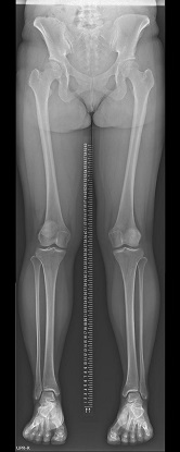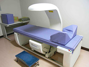 2種類のエネルギーX線を用いる精度の高いDEXA法(Dual Energy X-ray Absorptiometry)を採用した装置で、身体の骨塩量を測定しています。骨粗鬆症などの診断に使用し、加齢による骨密度の変化や治療の効果判定に用いられます。