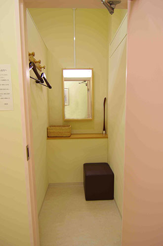 乳房は丸みを帯びているため、プラスチック板とフィルム支持台で乳房を挟み、均等な厚みにすることで乳腺の重なりを減らし、病変部の描出能を向上させ、少ないエックス線量で撮影することが可能となります。原則として2方向で撮影します。また撮影乳房は、症状がある側(検測)だけでなく、症状がない対側乳房も撮影します。通常のレントゲン撮影と異なり、軟エックス線を用いて撮影するため、髪の毛や薄い衣服なども障害陰影となるため、当院では基本的に上半身は裸の状態で撮影します。撮影時に髪が写り込む可能性がある時は髪をまとめていただくことがあります。また清涼パウダーボディー用ファンデーションなどはマンモグラフィでは障害陰影となる場合がありますので、ご使用をお控えください。検査において乳房の厚みを均一にして固定するため、痛みを伴う場合があり、全く痛みを感じない方、強く痛みを感じる方、人それぞれです。