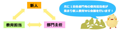 教育担当、部門主任が連携を取りながら教育に当たる。