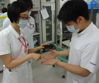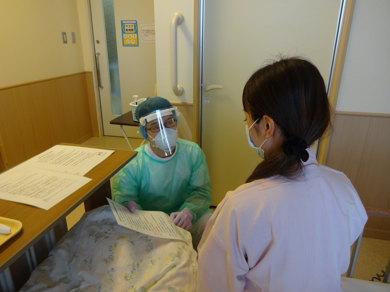 感染症患者への対応については、感染制御部と連携をしながら、患者さんを担当する前に、手指衛生や個人防護具の着脱トレーニングを繰り返し受けています。また、疑問に感じたことはチーム内で共有し、早期に対応できるようにしています。新興感染症に対応できる看護師を育成することは大学病院の使命でもあり、今だからこそ学べる看護もあることから、今年度はコロナ専用病棟にも新人を配置しています。当初は不安を抱いていましたが、正しい知識を伝え必要なトレーニングを行い、患者さんに対応している先輩から学習することで不安も軽減され、チームの一員として力を発揮しています。