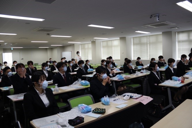 新入職者ガイダンスは、研修医・看護師・薬剤師・検査技師・事務職員など本院に就職する全職員が参加し、感染予防対策のため、6つの会場に分かれて実施しました。
