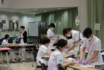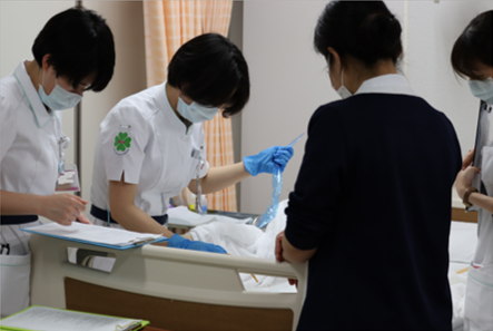 また、4月から5月にかけては、部署のニーズに合わせた看護技術研修(吸引・膀胱留置カテーテルなど)も行っています。部署ごとにニーズの高い看護技術を少人数でトレーニングし、臨床現場ですぐに実践できるように心がけて指導をしています。