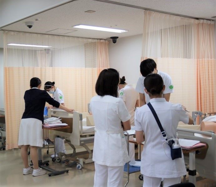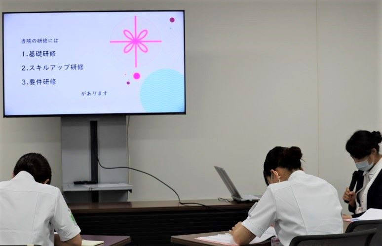 また、看護技術研修も例年通り行っています。部署毎にニーズの高い看護技術に対してシミュレーターを用いて演習することで、その後の部署での実践・指導につなげています。
