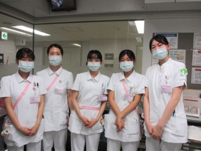 血液内科・呼吸器内科・腫瘍内科病棟では、新卒の看護師が5人配属になりました。コロナ禍の制限がある中での実習だったため、仕事への不安もあったと思いますが、病棟では毎日笑顔で元気に頑張っています。内科の病棟なので入院期間も長く、入退院を繰り返す患者様も多くいらっしゃいます。そんな中で患者様との人間関係の構築、信頼関係を築くことは大切だと思いますが、皆、先輩たちの温かい指導のもと看護師として成長していきます。