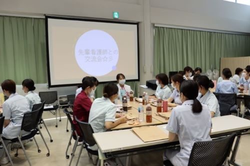 今年度は8月にサマーインターンシップを5回開催しました。台風や気候の変化によるゲリラ豪雨もあり、開催が心配されましたが、すべて対面で開催することができました。内容は、病院の概要と教育体制の説明、各部署で看護師のシャドーイング、1.2年目看護師との交流会でした。現場の看護師や経験年数の浅い1,2年目の看護師と関わることで、看護師同士のコミュニケーションの様子、職場の雰囲気や繁忙の程度、また自己学習の方法や時間など、見て、聞いて、感じていただけた参加者もいたようです。全国各地から多くの方にご参加いただき、ありがとうございました。