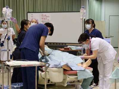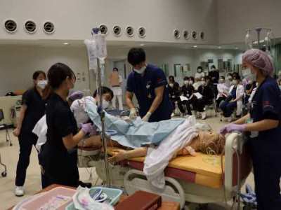 本院は、県内で3施設のみが認定されている、総合周産期母子医療センターとして、分娩リスクの高い妊娠や高度な新生児医療に対応しています。産科病棟(助産師が配属)では、MFICU(母体胎児集中治療室)が6床設置されており、周産期医療の「最後の砦」として、飛び込み分娩や、急速に全身状態の悪化を招く産科出血等の受け入れもあり、緊急時においても多職種が連携してそれぞれの役割に応じた力を発揮できるよう、定期的にシミュレーショントレーニングを行っています。先日、「コードむらさき」(産科危機的出血対応のアクションコード)のシミュレーションを行いました。産科医師、助産師、救急部医師、救命救急センター看護師、輸血部、検査部が参加し、妊婦さんのシミュレーターを相手に、緊迫感のある様子で行われました。普段一緒に勤務していない部署同士や多職種が緊急時のシミュレーションを行うことで、それぞれの役割を認識し、「この言葉では伝わらない」「この処置の前に指示があったので先の行動が予測できた」など具体的なコミュニケーション方法まで振り返ることができました。