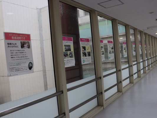 5月12日~18日は看護週間です。当院看護部では、看護週間中にイベントを開催します。5月13日~17日には、1階の渡り廊下に部署紹介ポスターを掲示しています。このポスターには部署の看護と共に大切にしたい看護を漢字一文字で表現しています。