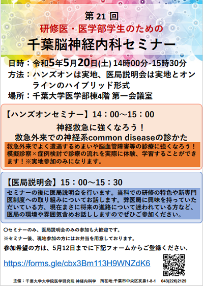 ◆ 詳細は、ご案内ポスターをご覧ください。 第21回脳神経内科セミナーご案内ポスター