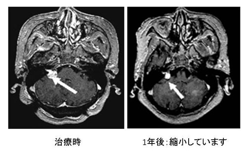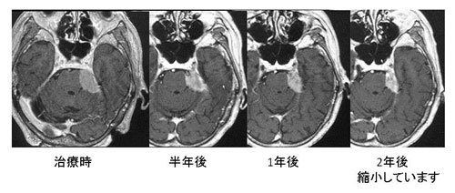 その他の良性脳腫瘍(下垂体腺腫(ホルモン産生、非産生)、頭蓋咽頭腫)に対する有効性も報告されています。ただし、いずれの場合も視神経・視交叉と腫瘍が離れていることが治療の条件です。