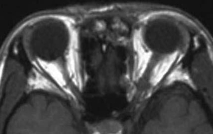 腫瘍の発生部位や大きさによって症状は異なります。腫瘍が、外眼筋によって形成される四角錐の内部にあるか外部にあるかによっても症状が異なり、外部では眼球突出、内部では視機能障害が主徴となります。治療上最も問題になるのは視機能です。手術の時期を逸すると視機能障害が後遺し、場合によっては失明することもあります。片眼性の視力視野障害は気づかずに進行していることが多いので、少しでも異常を感じたら早期の検査が必要です。