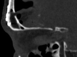 右視力・視野障害、眼球突出を主訴として来院した。摘出手術後視機能は改善し、眼球突出は消失した。骨条件術後CTでは、眼窩壁が整復され術前と同じ形状を維持していることがわかる。